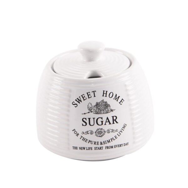 Zásobník na cukríky. Farba biela, dekor SWEET HOME. Materiál: keramika. Rozmery: objem 0,3 l, š. 9 cm, v. 8,5 cm. Materiál. Farba biela, dekor SWEET HOME. Materiál: keramika. Rozmery: objem 0,3 l, š. 9 cm, v. 8,5 cm.