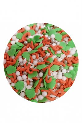 Vytvorte na svojich dezertoch čarovnú vianočnú atmosféru! Cukrové zdobenie s tvarmi stromčekov, guľôčok a hviezdičiek v tradičných vianočných farbách.