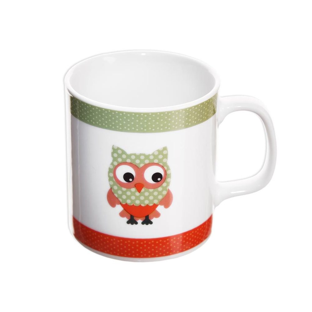 Hrnek s uchem. Materiál: porcelán. Dekor SOVA. Rozměry: objem 0,225 l, pr. 7 cm, v. 8 cm. Hrnek s uchem. Materiál: porcelán. Dekor SOVA. Rozměry: objem 0,225 l, pr. 7 cm, v. 8 cm.