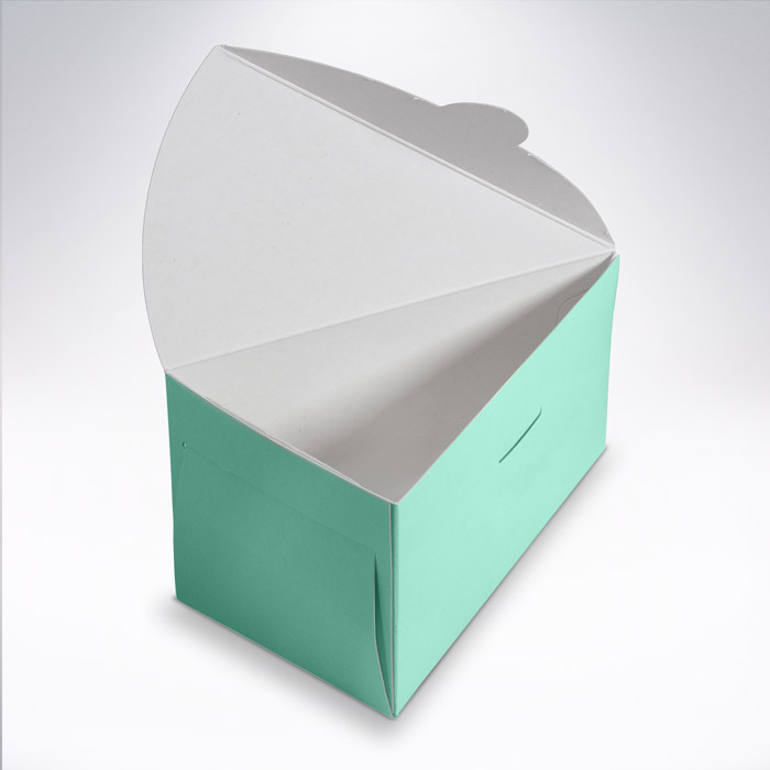 Uzatvárateľná krabička z hladkej lepenky navrhnutá pre cukrárne, pekárne, bistrá, catering. Konštrukcia krabičky je navrhnutá na zabalenie dezertov ako je cheesecake, tart, rez torty a podobne.
