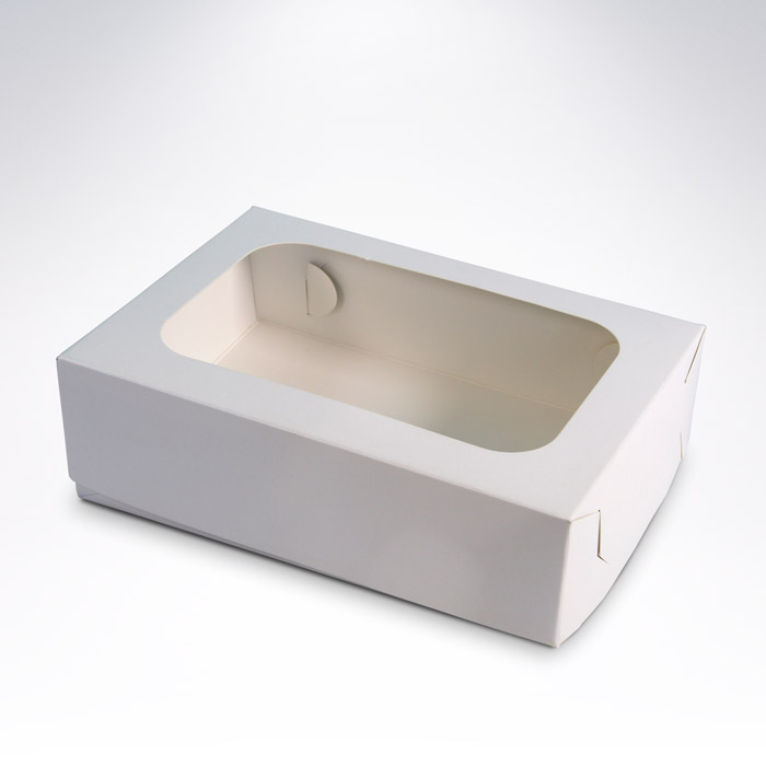 Krabička z hladkej lepenky s okienkom z BOPP fólie v rozmeroch 100x160mm. Kartón spĺňa podmienky pre styk s potravinami a tak sa krabička ideálne hodí na zabalenie makróniek a darčekové balenie perníčkov. V spojení s drevitou vlnou aj na darčekové balenie prírodnej kozmetiky. V ponuke je aj hnedá krabička s okienkom.