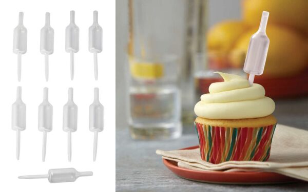 Minilapkins značky Wilton sú skvelé na plnenie košíčkov likérom, vínom alebo šampanským. Recepty s alkoholom ozdobte pomocou infuzérov v tvare fľaše. Vložte ich do vybraného likéru, vína alebo nealkoholického nápoja, stlačte a uvoľnite, aby sa naplnili. Stlačením lievika naplňte šálku extra dávkou chuti. Stlačiteľné plastové pipety na dezerty sú dokonalým doplnkom vašich koláčikov inšpirovaných kokteilmi. Naplnené alkoholom alebo ochuteným nálevom podľa vlastného výberu ich zapichnete do koláča alebo bábovky a pred konzumáciou jednoducho stlačíte, aby sa obsah vytlačil do škrupiny. Dobrú chuť.