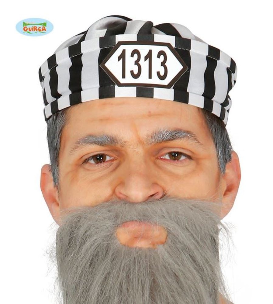 Čiapka gazely Štýlová textilná väzenská čiapka. Doplňte svoj kostým väzňa o túto pruhovanú väzenskú čiapku s číslom. Vnútorný obvod hlavy približne 55 cm.