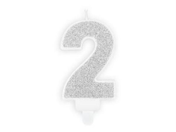 Narodeninová sviečka 2, strieborná, 7 cm – PartyDeco
