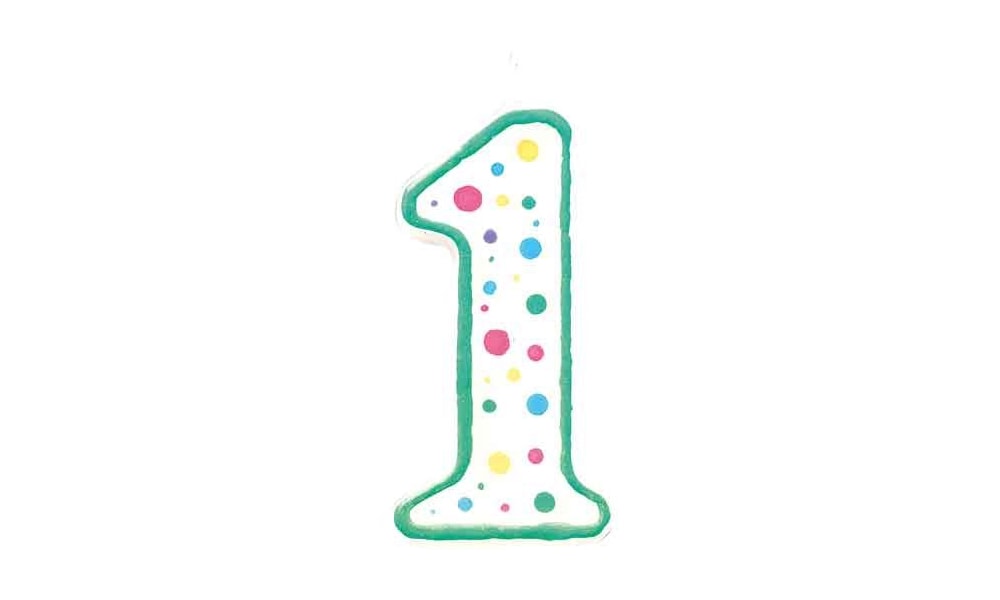 Narodeninová sviečka číslica 1 vo veselom zeleno-bielom prevedí.