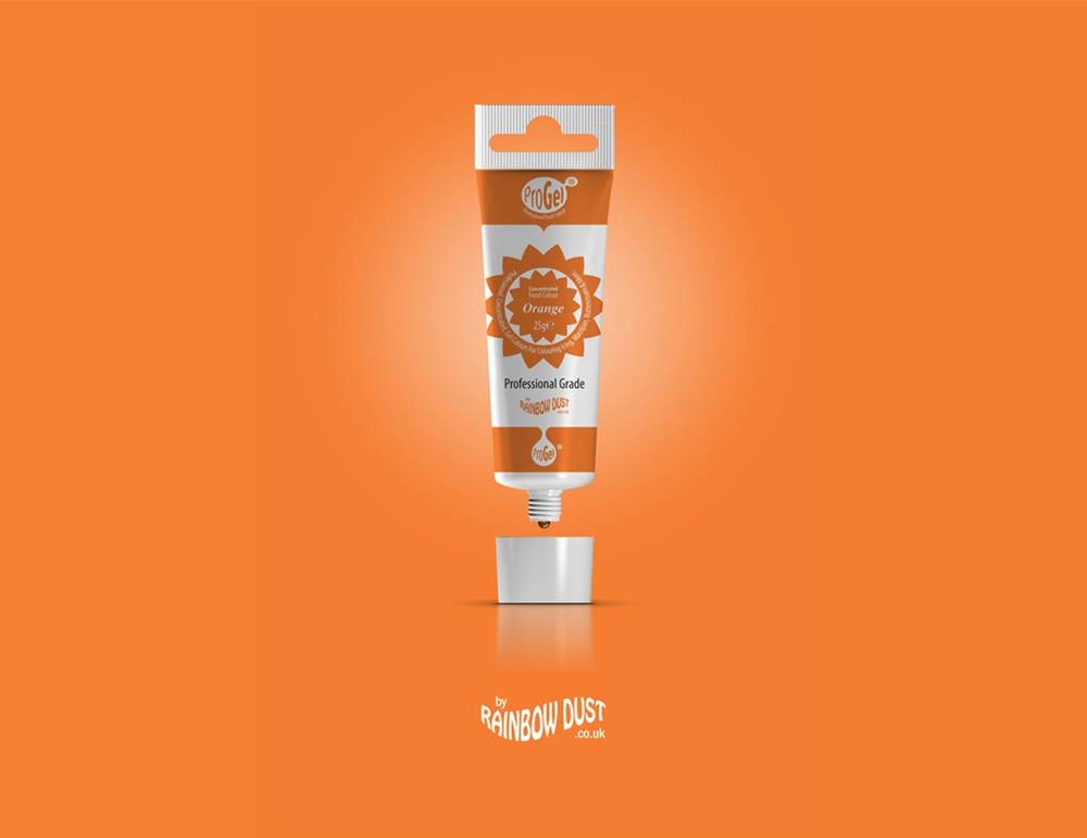 Orange ProGel – profesionální potravinářská gelová barva v tubě (oranžová) – Rainbow Dust