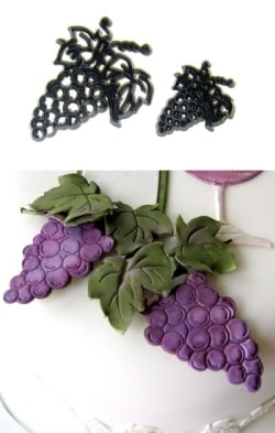 Vypichovátkom v tvare hrozna s listami môžete dekorovať nielen okrúhle poťahované torty, ale napríklad aj poťahované torty predstavujúce fľašu vína. Vypichovať môžete hrozno z modelovacích aj poťahovacích hmôt, ktoré najlepšie dofarbíme tekutými alebo gélovými farbami. Na dodanie lesku alebo odtieňa sa vám bude dobre pracovať s prachovými farbami. Na pripevnenie dekorácie na tortu použite jedlé lepidlo alebo kráľovskú glazúru.