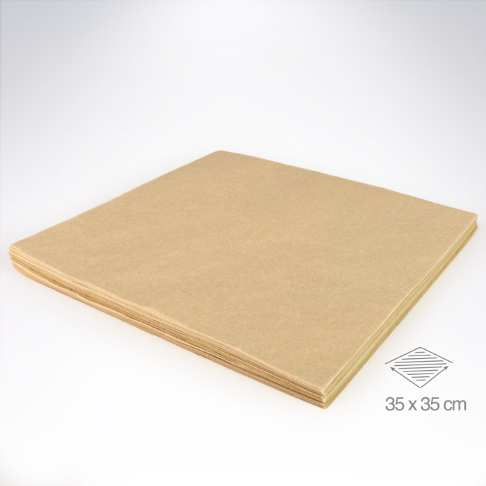 Pergamenová náhrada – nebielený baliaci papier vyrobený z prírodných surovín zadržiava tuk a vlhkosť. Rozmer 33×33 centimetrov je prispôsobený na vystieľanie krabíc na torty a cukrárskych prepraviek z našej ponuky. Nepremastiteľnosť pergamenového papiera ocenia aj prevádzkovatelia streetfoodov, bufety i predajcovia langošov.