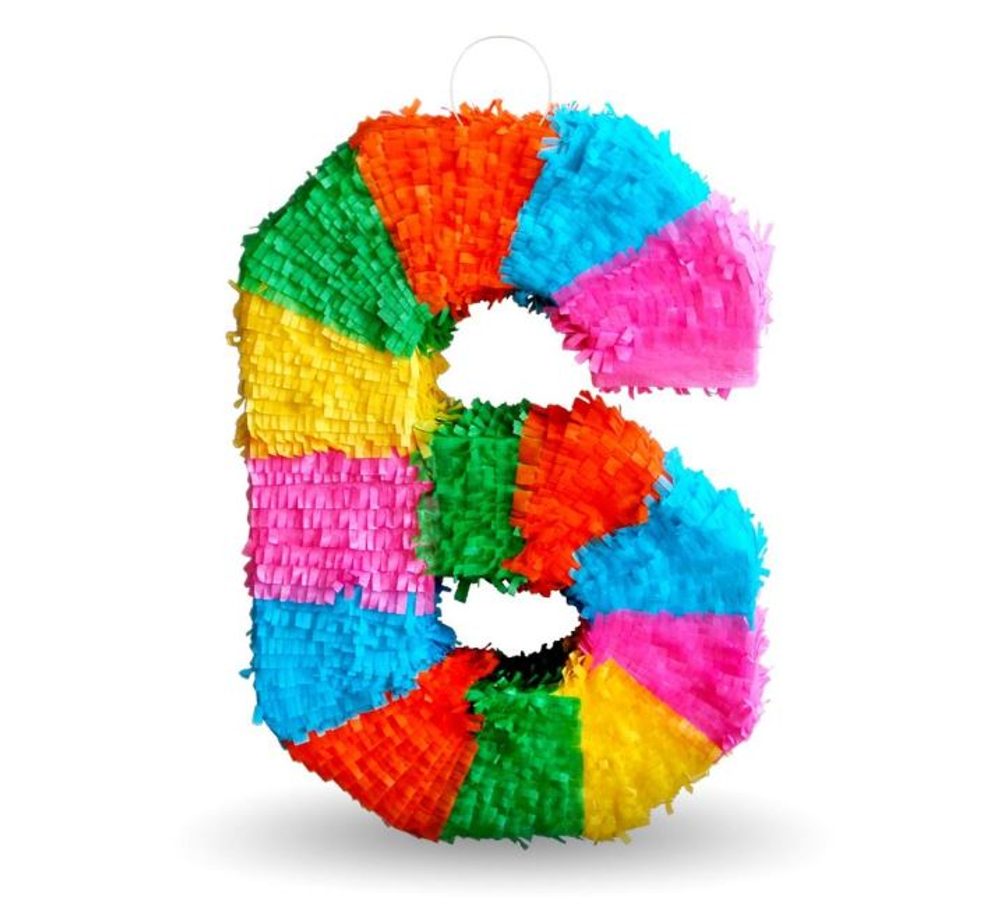 Piñata číslo " 6 " farebná – rozbitná, 50x35x7,5 cm – GoDan