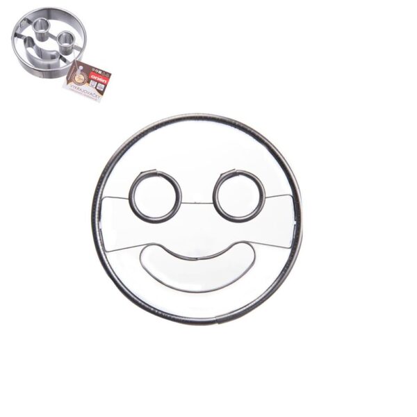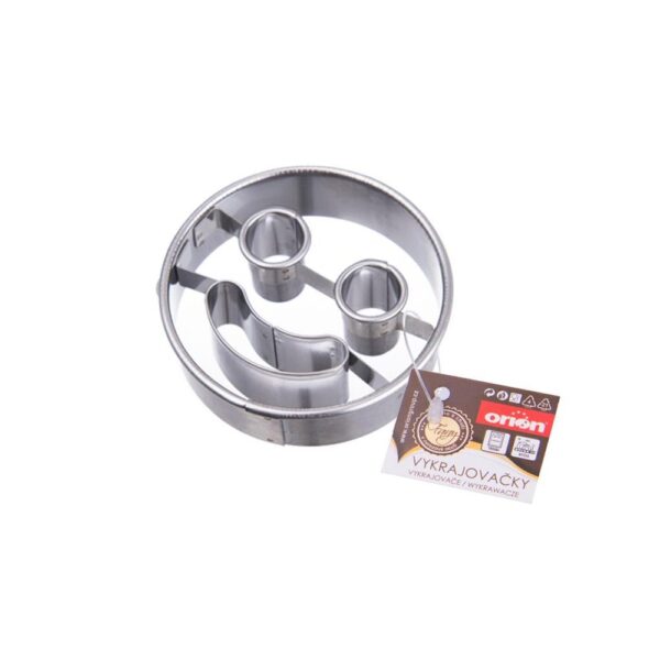 Krájač v tvare rybej kosti. Materiál: nehrdzavejúca oceľ. Rozmery: 7×4 cm. Rezačka v tvare smajlíka. Materiál: nehrdzavejúca oceľ. Rozmery: priemer: 5 cm.