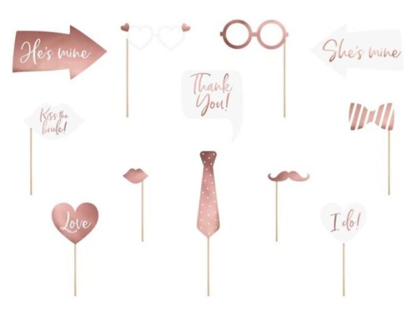 Svadobné fotopríslušenstvo, mix ružového zlata, 12 ks – PartyDeco