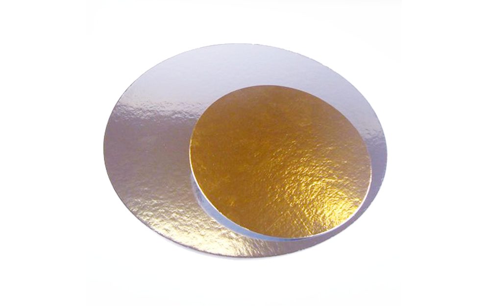 Tortová podložka zlatá a strieborná (obojstranná) kruh – 26 cm – FunCakes