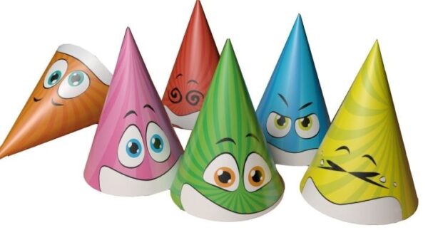 Tieto farebné klobúky nesmú chýbať na žiadnej narodeninovej oslave! Klobúky majú gumičku na lepšiu fixáciu na hlave. Súčasťou balenia je 6 papierových čiapok.