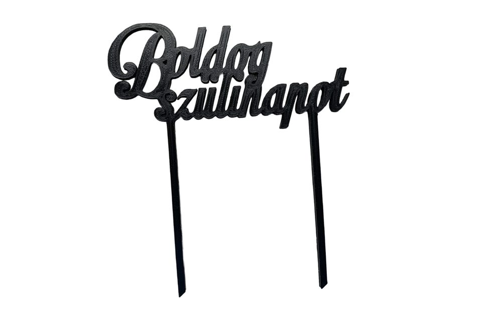 Vrchnák torty v podobe nápisu Boldog szülinapot (maďarsky) bol vytlačený v malých sériách na 3D tlačiarni. Pred použitím odporúčame vyprať vo vlažnej vode s pracím prostriedkom. Neodporúča sa umývať v umývačke riadu, stačí opláchnuť pri nižšej teplote (40 stupňov Celzia). Soli a chemikálie spolu s vodou s vysokou teplotou používanou v umývačkách riadu nie sú vhodné pre bioplast, z ktorého boli zápalky vytlačené. Najvhodnejšou metódou čistenia 3D tlačených výrobkov je preto opláchnutie pod prúdom vody a následné očistenie zvyšných kúskov cesta alebo hmoty pomocou kefy s dlhými štetinami.