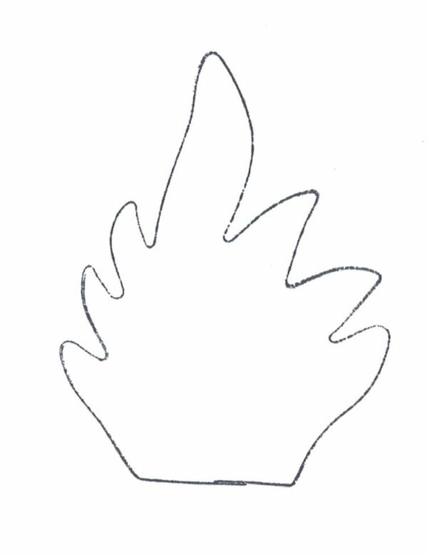 Vyrobeno z pocínovaného plechu, který vyžaduje ruční mytí a sušení. Tvar použitelný jako plamen, trs trávy, keřík apod. Rozměr 65×50 mm